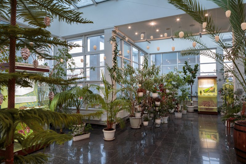 Сегодня там можно увидеть более 300 видов и сортов растений, в том числе редкие краснокнижные экземпляры. На тропическом маршруте гостей ждут папоротники, бромелии и орхидеи, на субтропическом — цитрусовые, лавр и олеандр. Отдельного внимания заслуживает коллекция кактусов и суккулентов: здесь представлены агавы, эхеверии, опунции и многие другие.
