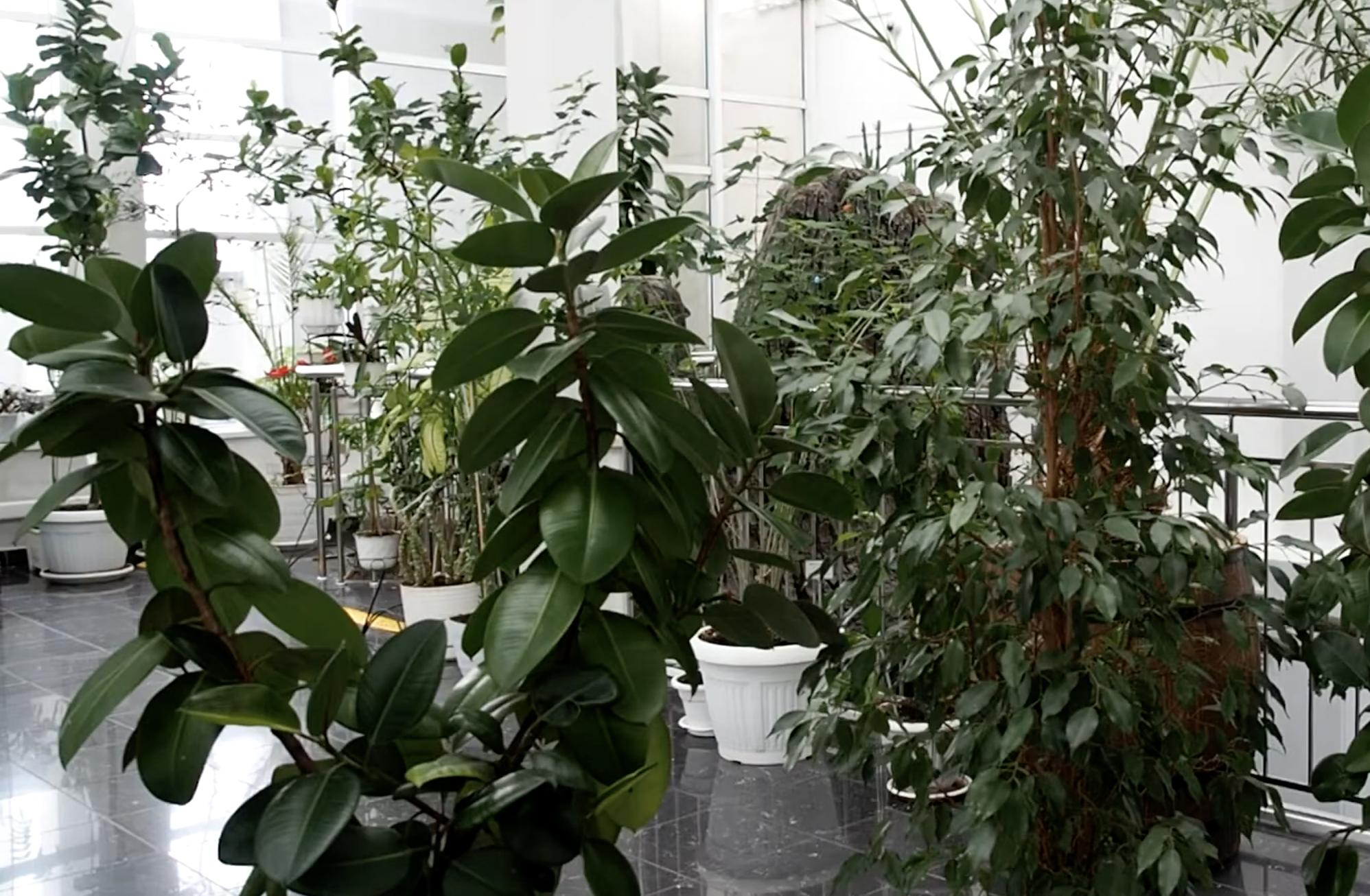 В сравнении с предыдущими учреждениями, этот вариант довольно скромный — большинство растений здесь представлены в пластиковых горшках. Тем не менее, ощущения прогулки в зимнем саду вам точно обеспечено. Кроме того, здесь нередко распускаются крупные экзотические цветы, а в начале весны массово зацветают амариллисовые — так что каждый визит может подарить маленькое открытие. После осмотра зелёной коллекции обязательно выйдите на балкон пятого этажа — оттуда открывается красивый вид на город.