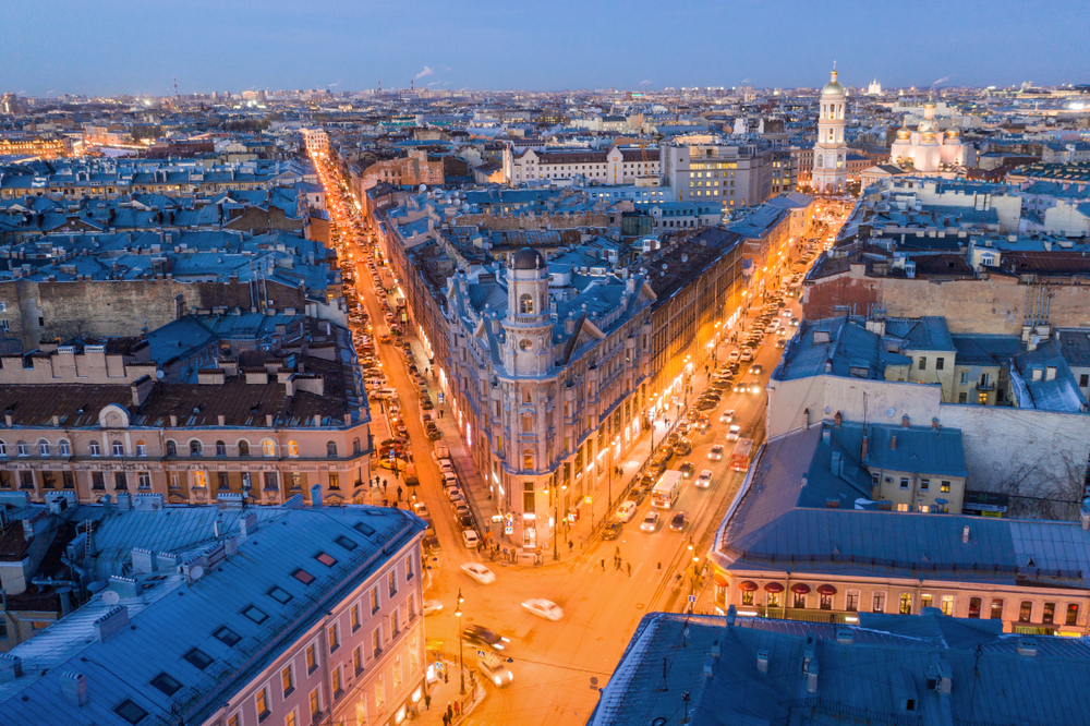 1 — вид на «Пять углов» с Загородного проспекта, 2 — дом Иоффа с крыши. Фото: Denis Mamin, Stanislav Samoylik / Shutterstock.com