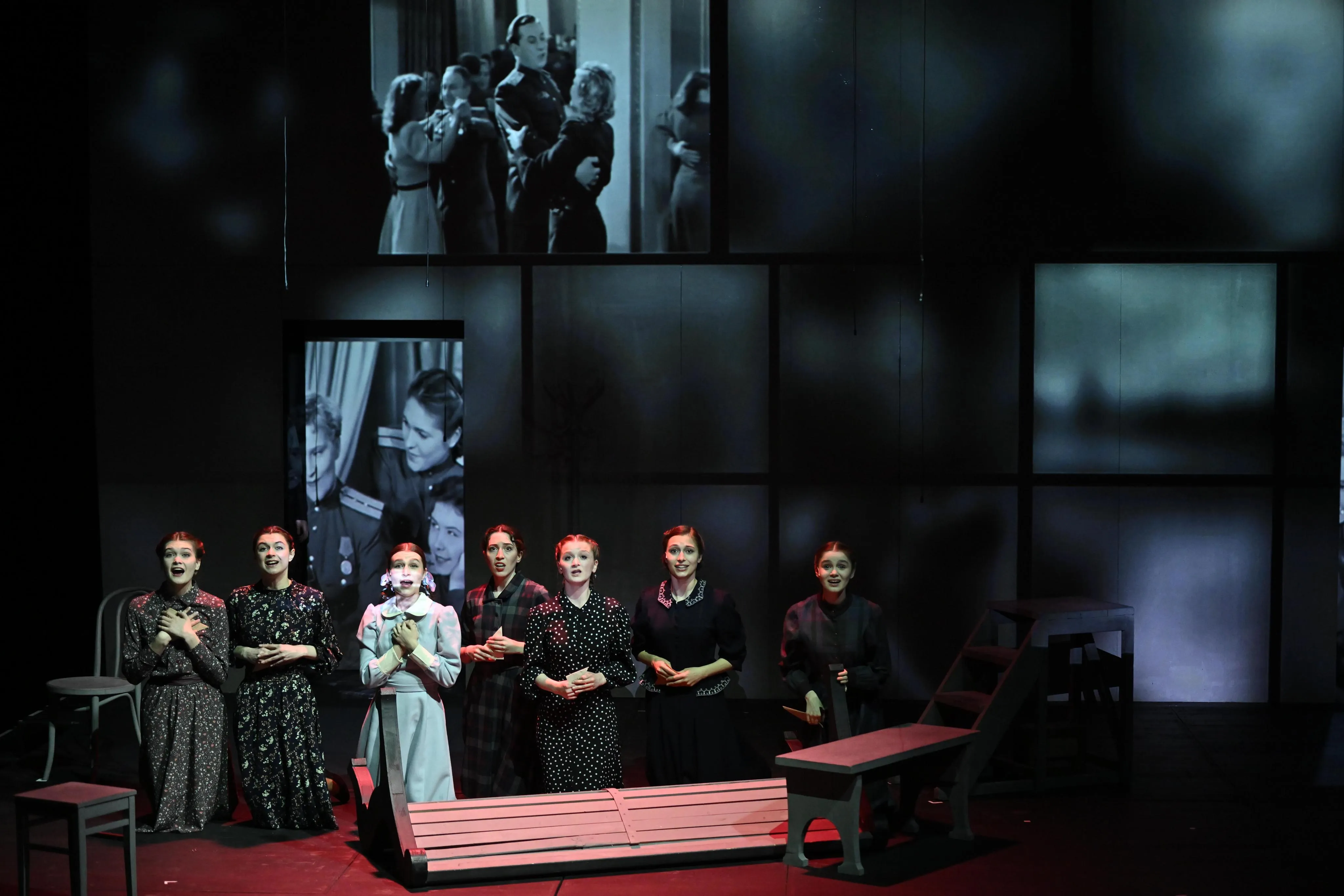 Постановка основана на песнях, стихах и кинохронике военного времени. Зритель словно оказывается в кинозале, где на его глазах разворачивается история любви, ожидания и надежды, которые не могут угаснуть, даже на войне.